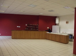 Equipement de la salle : grand bar accueil, coin cuisine avec : réfrigirateur, lave-vaisselle, micro-ondes, machine à café 50 tasses, machine à glaçons, vaisselle pour 100 couverts. 20 tables de 8 personnes et chaises assorties.
